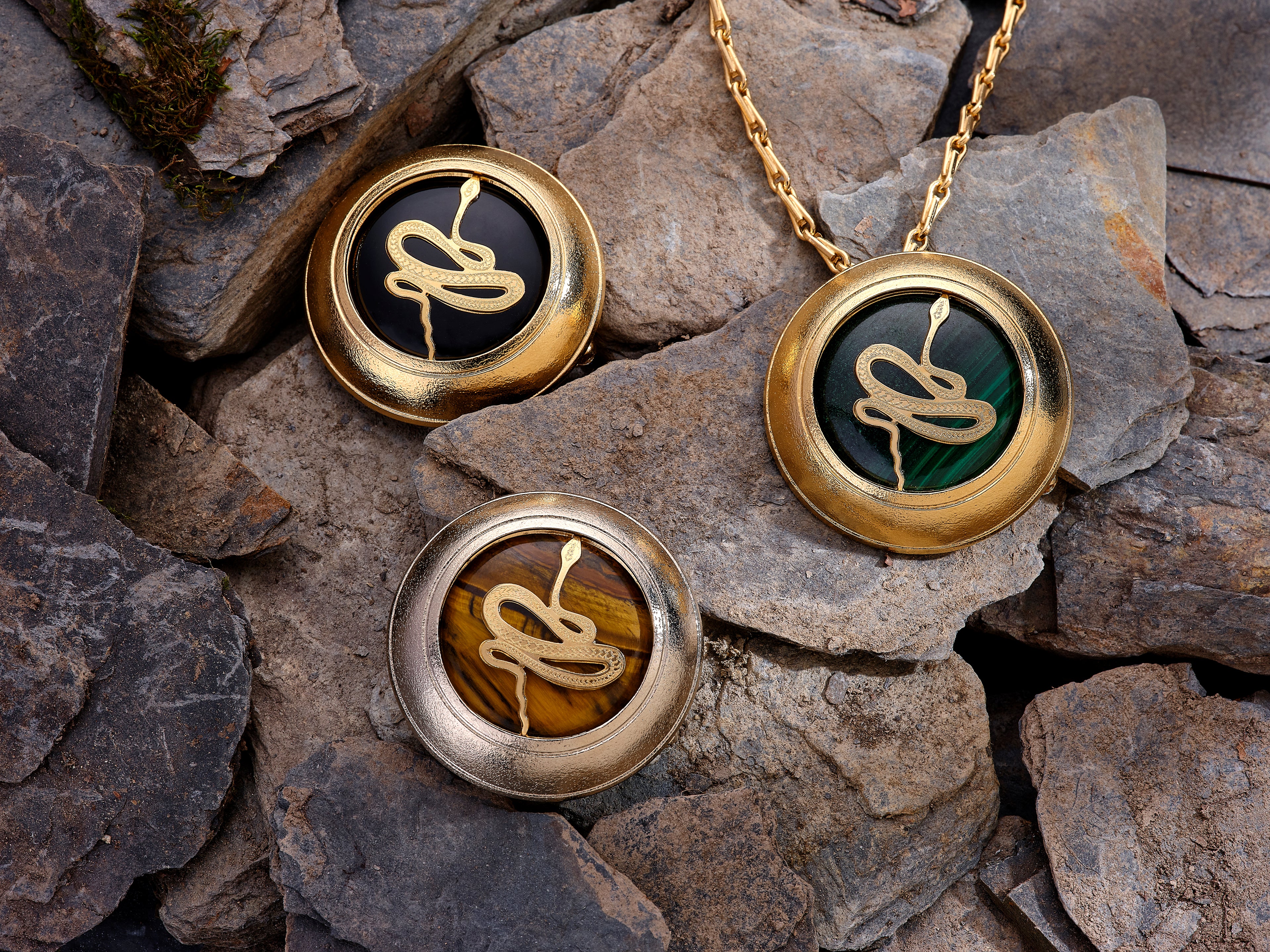 Broche "Double-Je" - Serpent/Oeil-de-Tigre